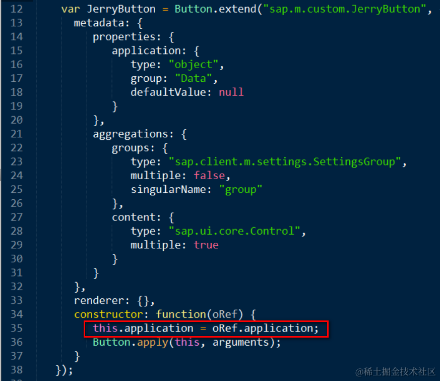 var oJerryButton = new JerryButton({ application: oApplication } );