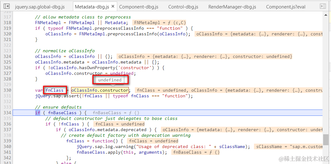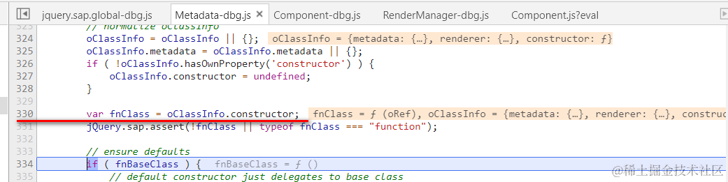 debug extend的实现, 在line 330里把调用extend指定的constructor赋给fnClass