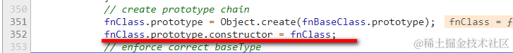 然后在line 352把fnClass赋给fnClass.prototype.constructor. 这样,每次用fnClass这个构造器new新的instance时,constructor指向的function会自动被call到。
