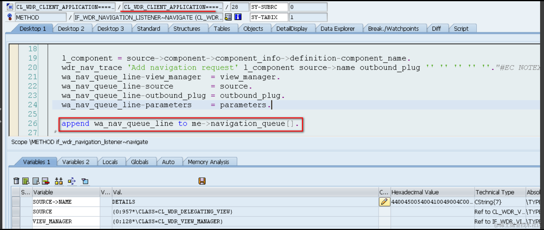 Webdynprode navigate方法是把和navigation相关的数据填到一个line structure里,再insert到一个叫做navigation queue的internal table: