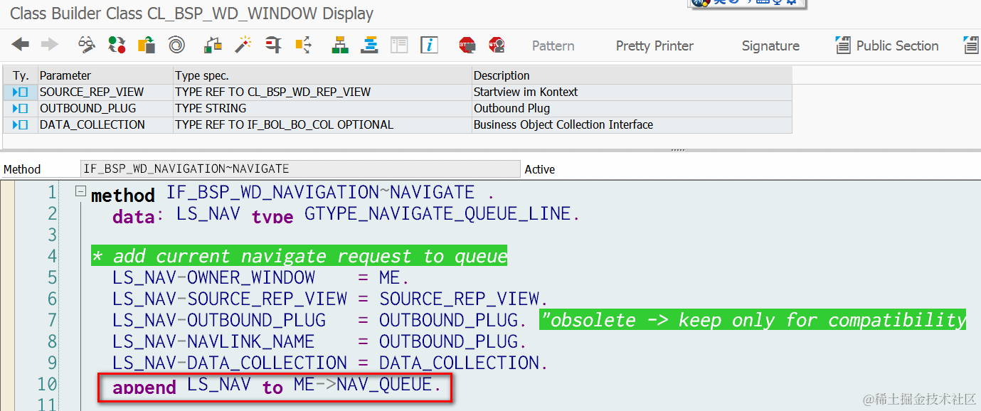 下图是ABAP webdynpro的navigate方法,实际操作是delegate到view的view manager: