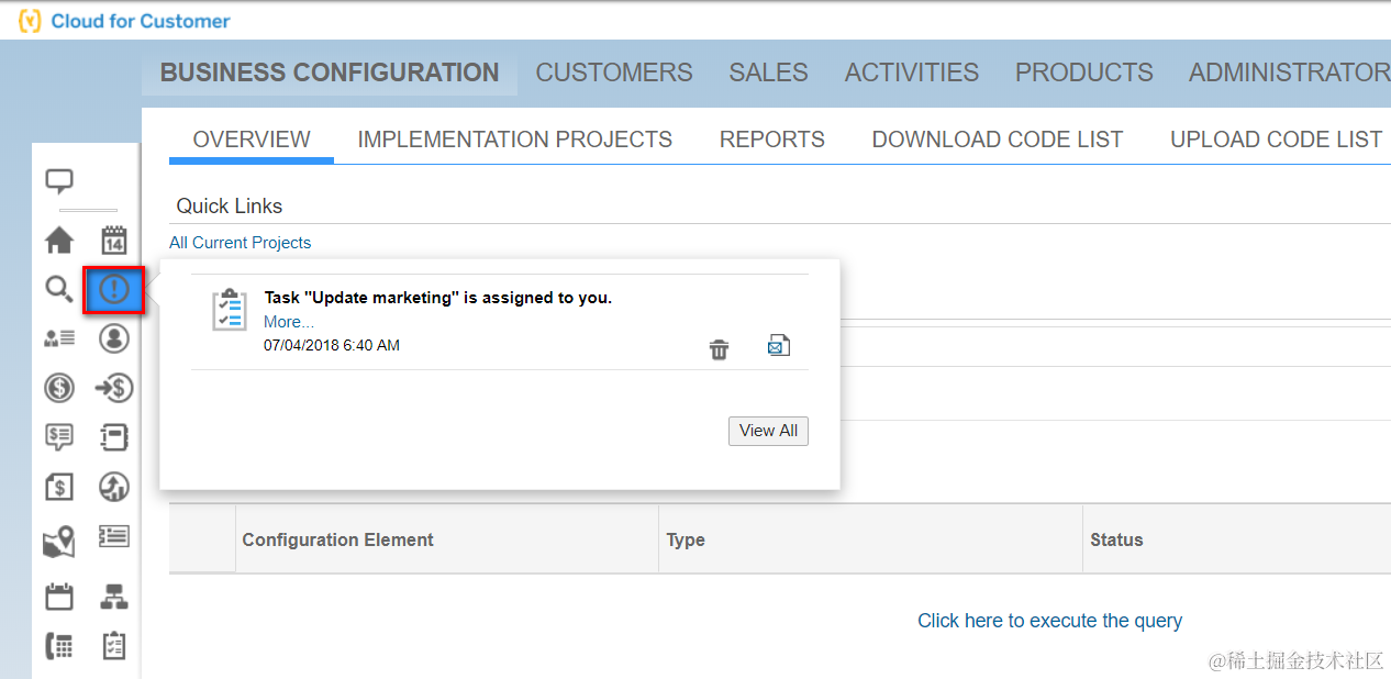 登录C4C后,会渲染左边的toolbar,点击小红点,就会看到当前未读的notification:
