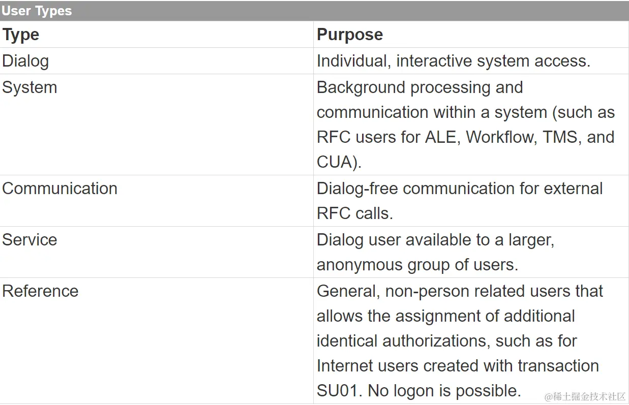 (5) Reference: General, non-person related users that allows the assignment of additional identical authorizations, such as for Internet users created with transaction SU01. No logon is possible.