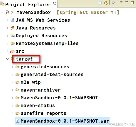 命令行mvn clean install后,生成的jar文件默认位于target folder下。