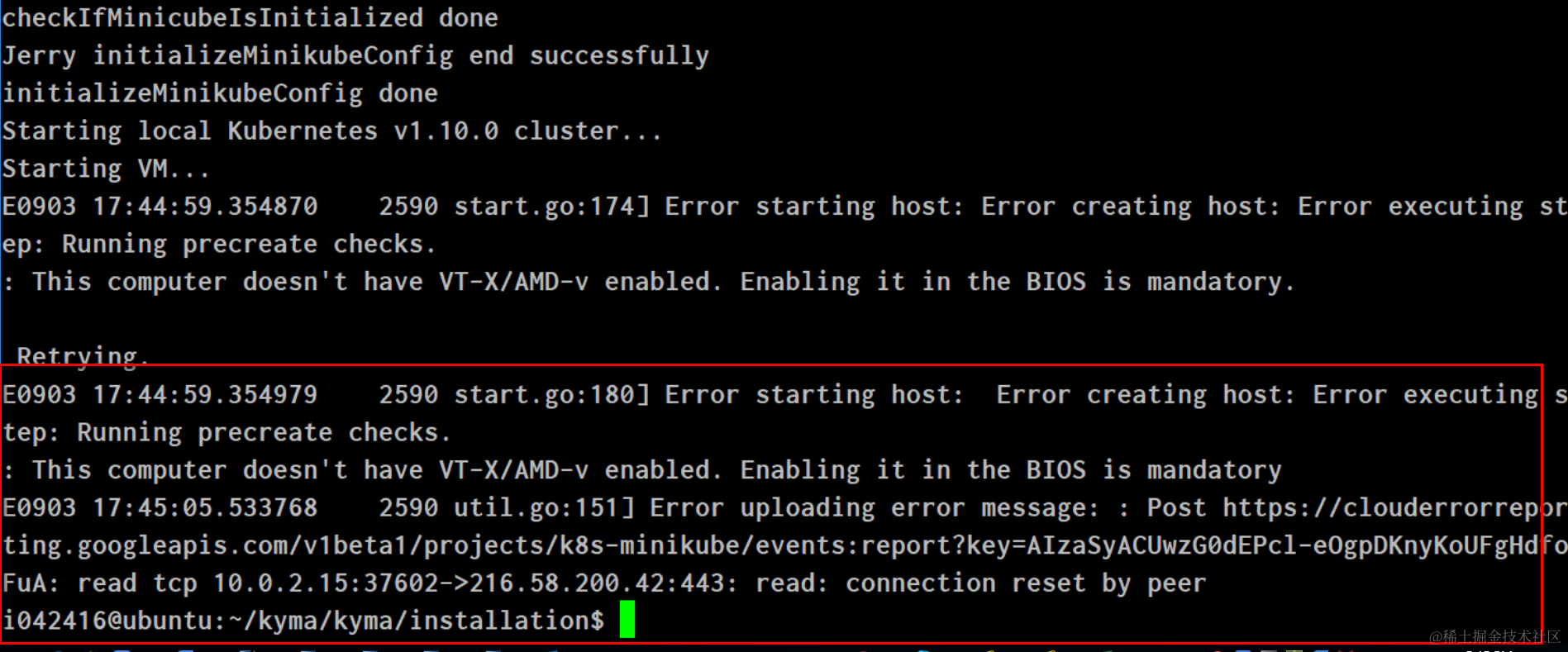 这次遇到error message:This computer doesn’t have VT-X/AMD-v enabled. Enabling it in the BIOS is mandatory。