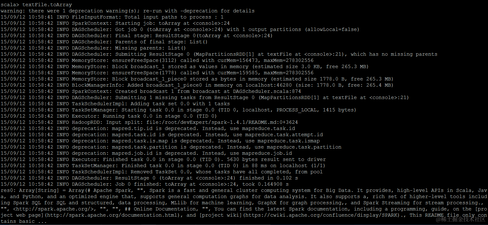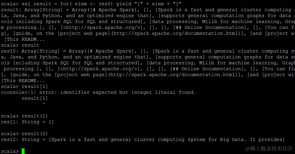 Scala学习笔记:how to convert a StringRDD to array 已注销 2021-04-26 121 阅读1分钟 Created by Wang, Jerry, last modified on Sep 25, 2015 通过() 传入下表进行数组遍历: 给数组每个元素加上"[" 和"]": 要获取更多Jerry的原创文章,请关注公众号"汪子熙":