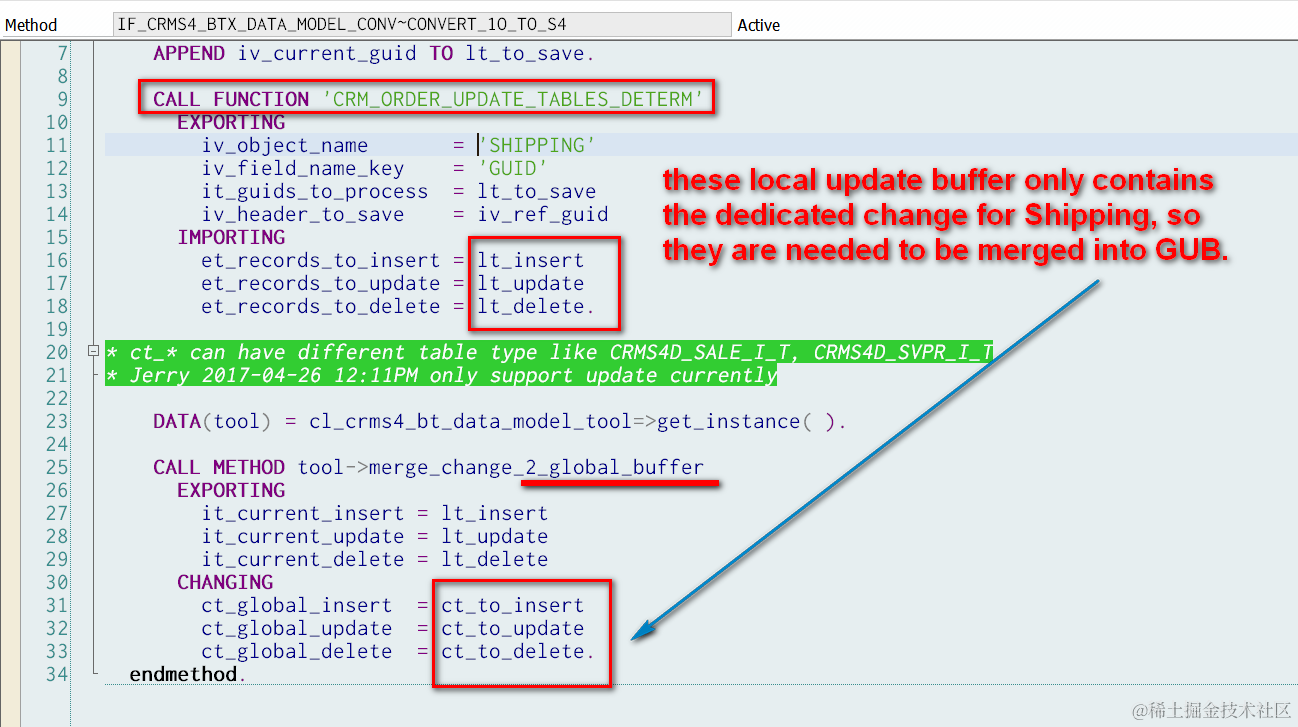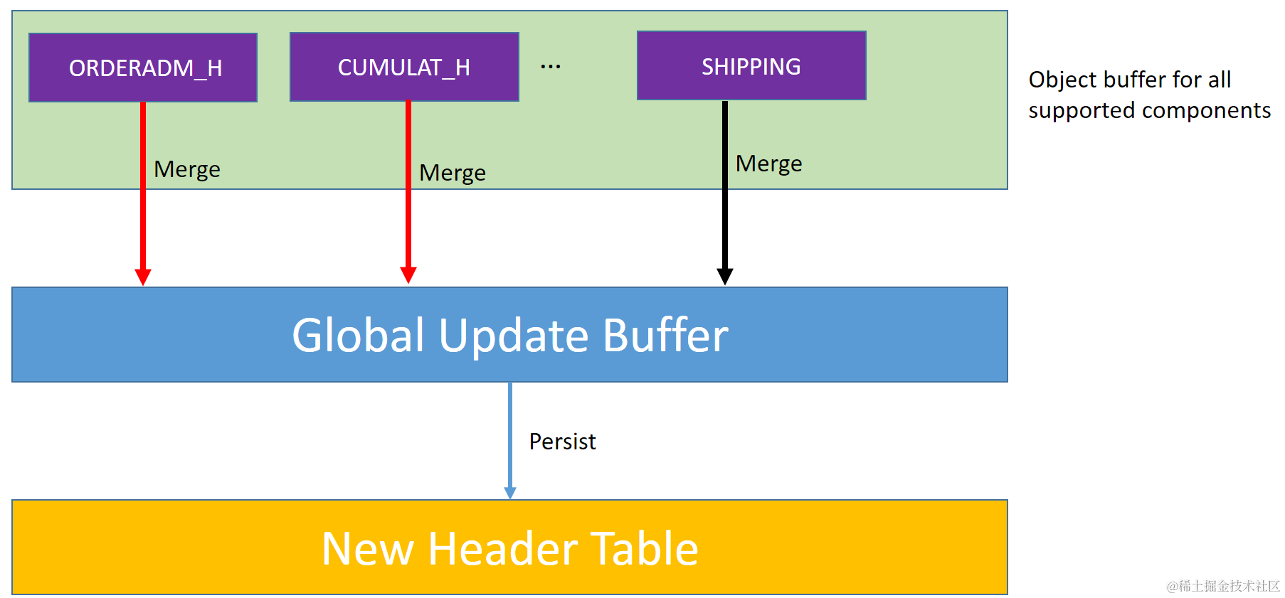 (1) I introduce a terminology “Global Update Buffer", which consists of three internal table where the corresponding insertion, update and deletion operation for CURRENT ORDER is included.