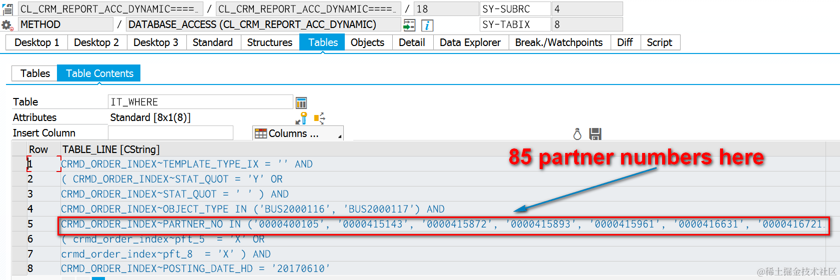 CRMD_ORDER_INDEX~PARTNER_NO IN (‘0000400105’, ‘0000415143’, ‘0000415872’, ‘0000415893’, ‘0000415961’, ‘0000416631’, ‘0000416721’, ‘0000416746’, ‘0000417016’, ‘0000417054’, ‘0000417058’, ‘0000417093’, ‘0000417672’, ‘0000417681’, ‘0000417740’, ‘0000417865’, ‘0000418050’, ‘0000418597’, ‘0000418812’, ‘0000420391’, ‘0000420441’, ‘0000420752’, ‘0000420873’, ‘0000420881’, ‘0000420882’, ‘0000420925’, ‘0000420932’, ‘0000420935’, ‘0000420955’, ‘0000421055’, ‘0000421094’, ‘0000421316’, ‘0000421721’, ‘0000421722’, ‘0000421724’, ‘0000422264’, ‘0000422404’, ‘0000422419’, ‘0000422483’, ‘0000422765’, ‘0000422893’, ‘0000423049’, ‘0000423059’, ‘0000423060’, ‘0000423061’, ‘0000423062’, ‘0000423063’, ‘0000423064’, ‘0000423065’, ‘0000423067’, ‘0000423142’, ‘0000423555’, ‘0000424451’, ‘0000424467’, ‘0000424840’, ‘0000700364’, ‘0000703460’, ‘ARPANA’, ‘BAKER’, ‘BOUWHUIS’, ‘BUSCHC’, ‘CRMAUTOTST’, ‘CRMSUPPORT’, ‘D019666’, ‘D031132’, ‘D032824’, ‘DIGGS’, ‘DUMANN’, ‘FREEMAN’, ‘KING’, ‘KRATZN’, ‘KRUSE’, ‘LONDON’, ‘LUCKINSE’, ‘MILLER’, ‘MYERS’, ‘PORTALCHM’, ‘RYZHOVA’, ‘SCHULZ’, ‘SCHUPPM’, ‘SHRAMASUM’, ‘WANGJ’, ‘WANGJ’, ‘WHITE’, ‘WILSON’, ‘ZELLERSU’) AND