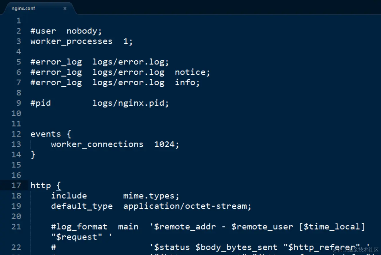 这是安装该扩展之前,用sublime text打开的nginx.conf配置文件的外观,没有任何语法高亮: