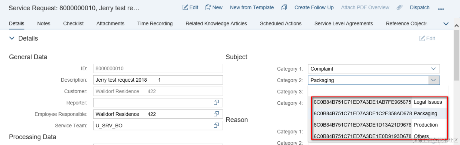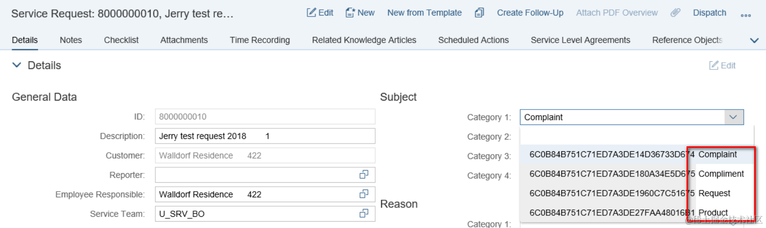SAP CRM Service Request subject value determination