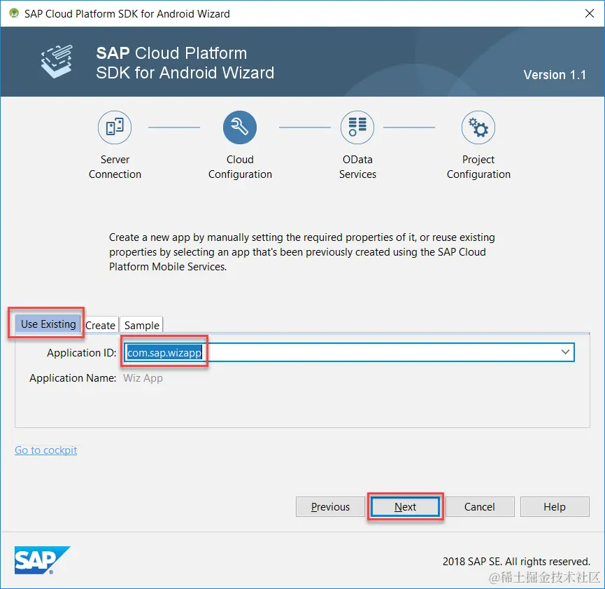 使用SAP Cloud Platform mobile service上已经创建好的应用:com.sap.wizapp: