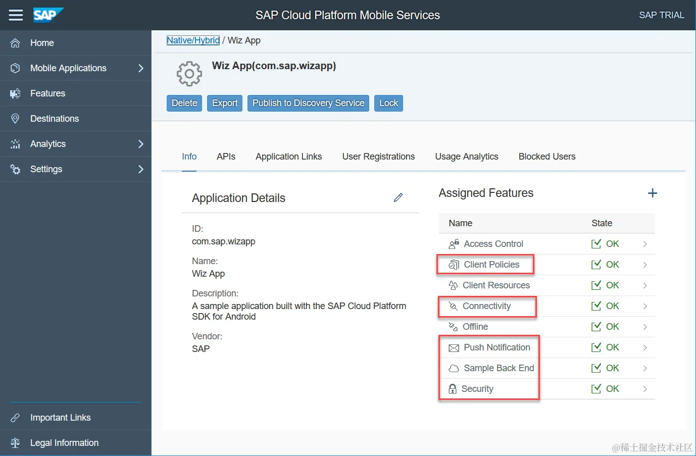 这个com.sap.wizapp的配置在SAP Cloud Platform的mobile services页面里打开如下: