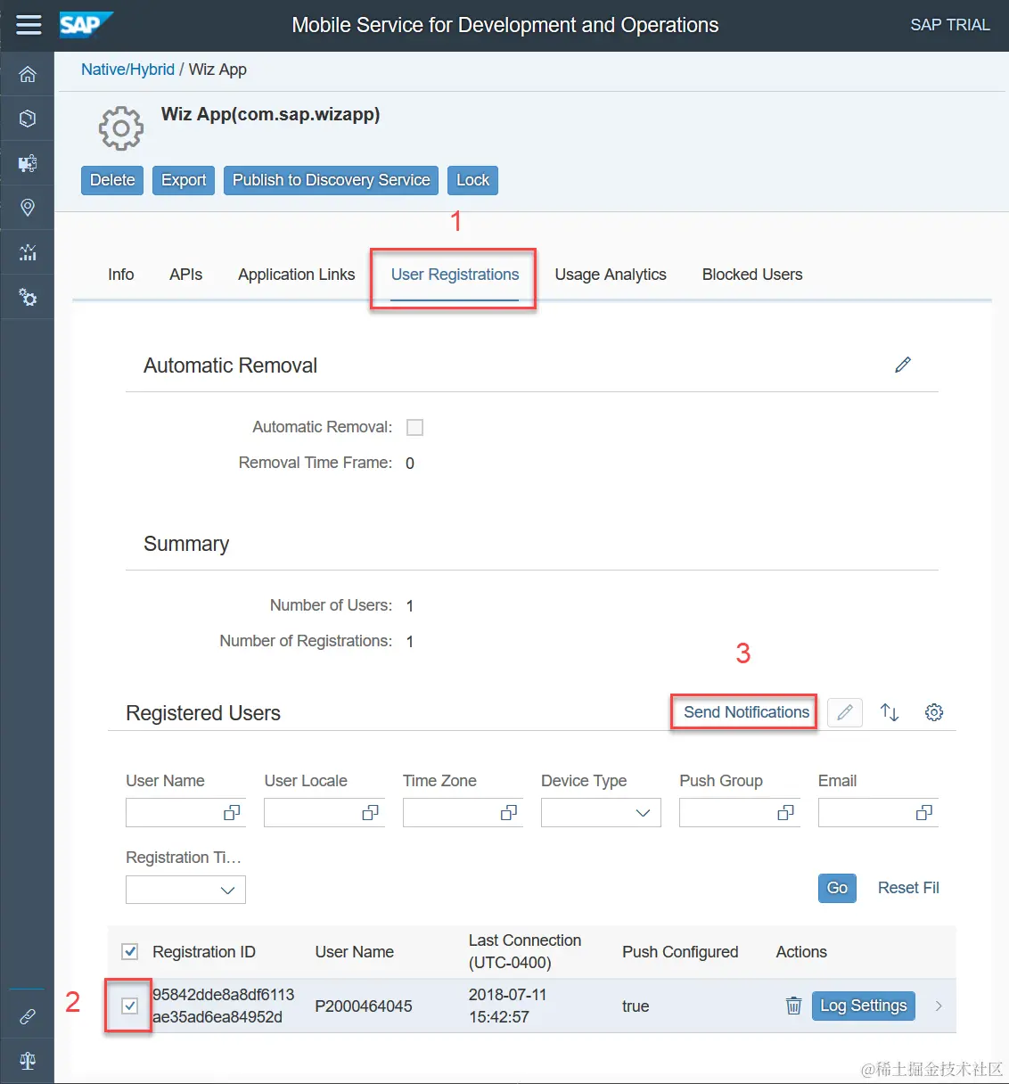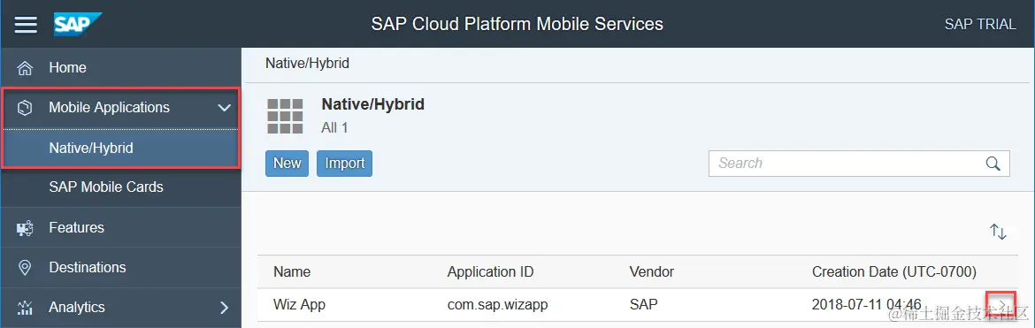 登录SAP Cloud Platform Mobile Services management cockpit: