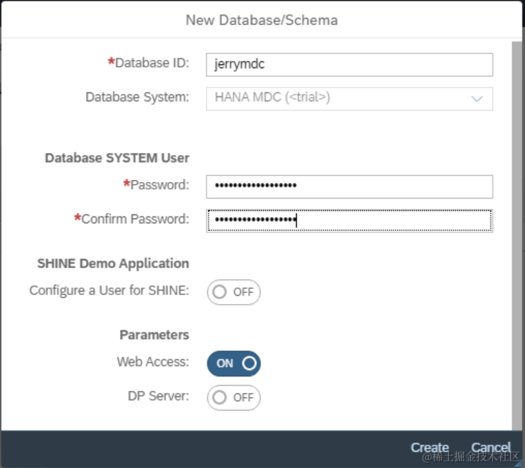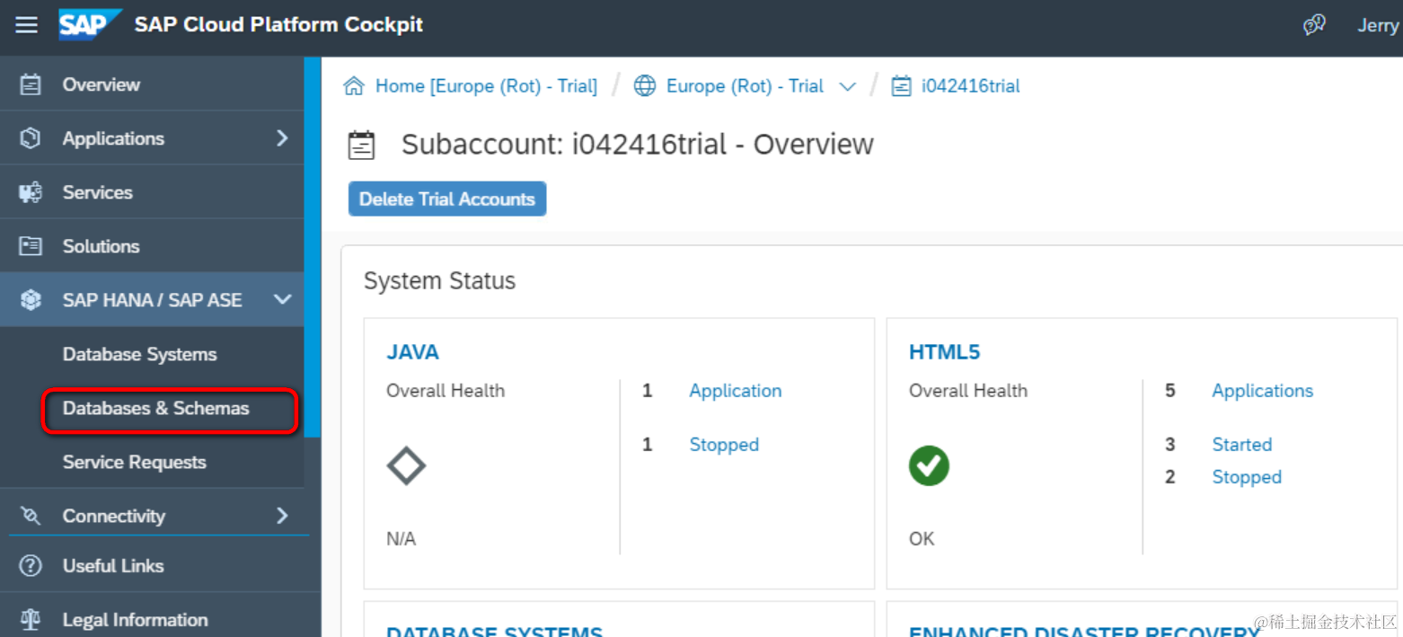 登录SAP Cloud Platform Neo环境,点击SAP HANA / SAP ASE菜单项下的databases & Schemas:
