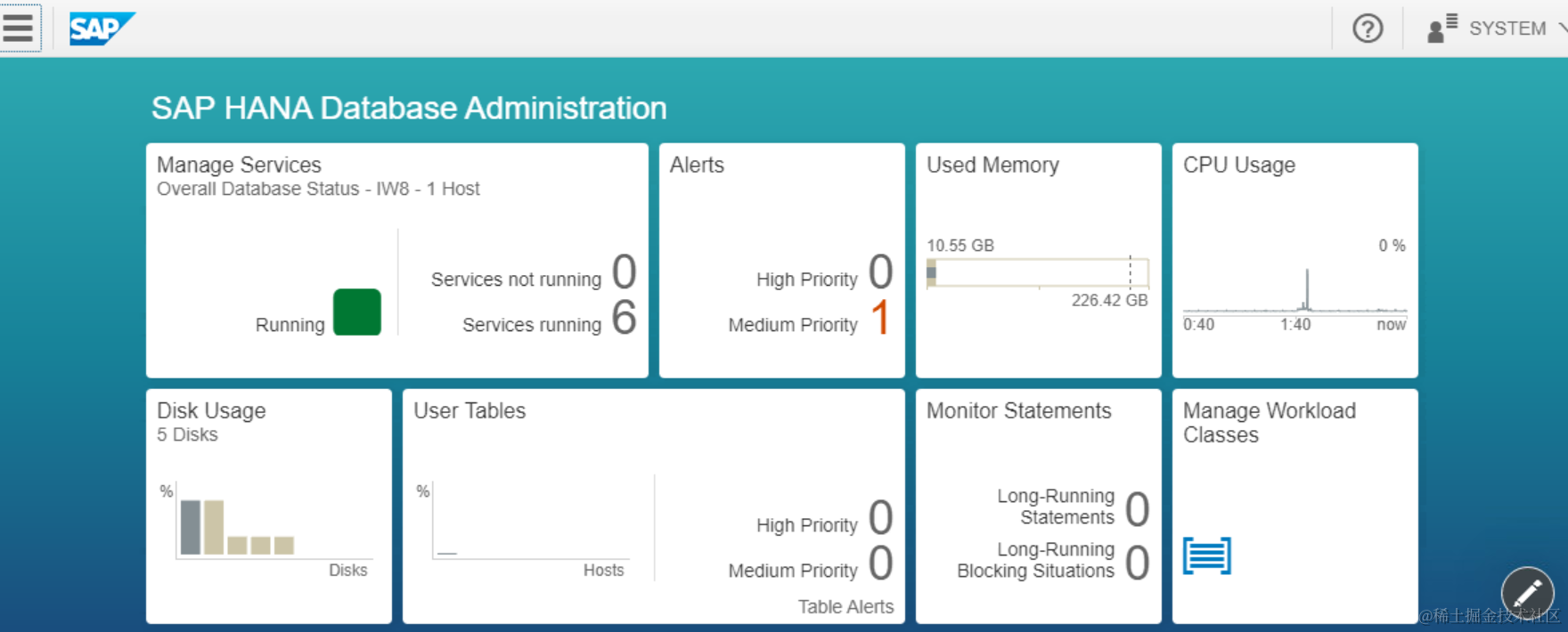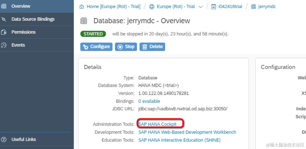 待该实例中状态为STARTED之后,我们就可以点击SAP HANA Cockpit进入控制台了: