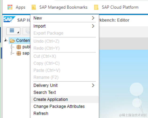 在content节点下,右键菜单,新建一个Application: