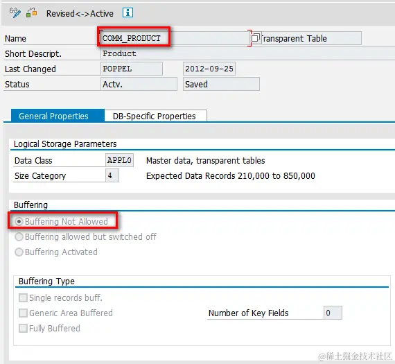 Compare the buffer setting below for application table and configuration table: