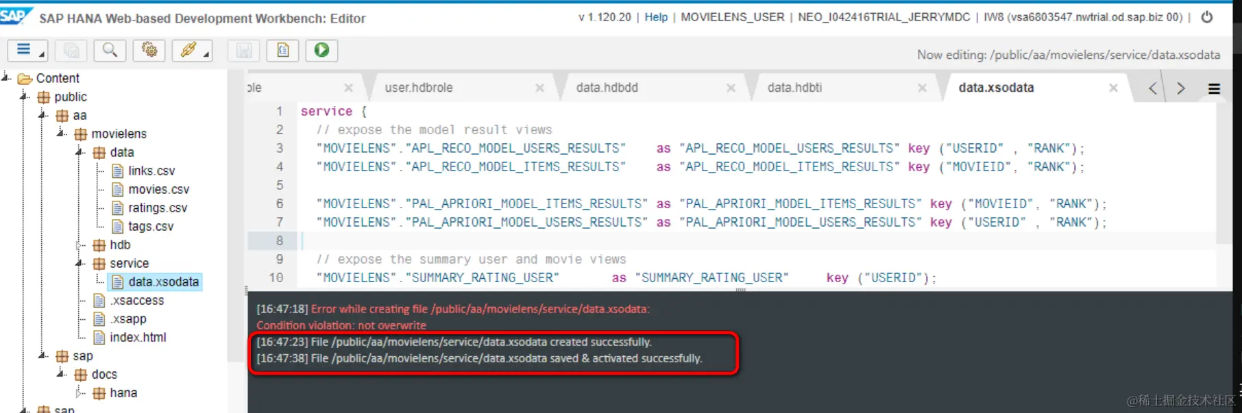 新建data.xsodata文件,将下列源代码粘贴进去: