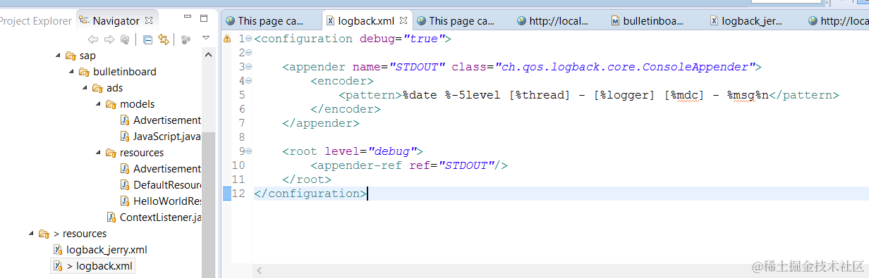 paste the following content into logback.xml: