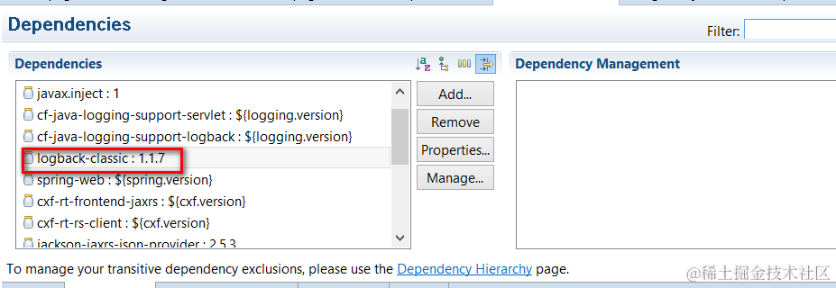 Check our pom.xml, we are using logback-classic 1.1.7 as logging framework.