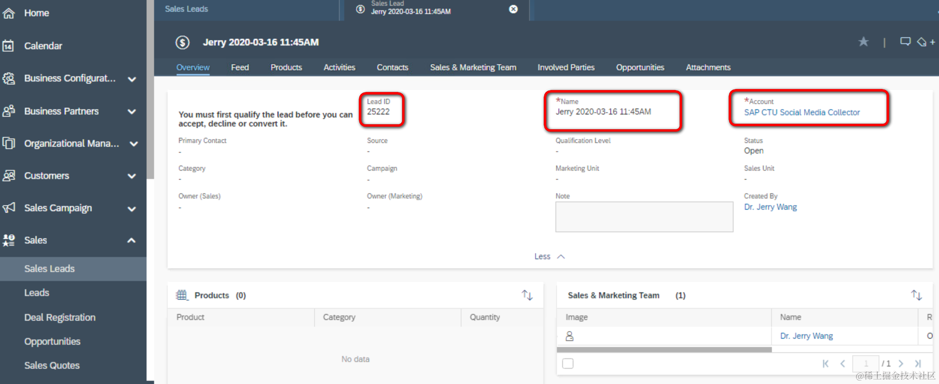 一共需要两次OData消费来创建Lead.