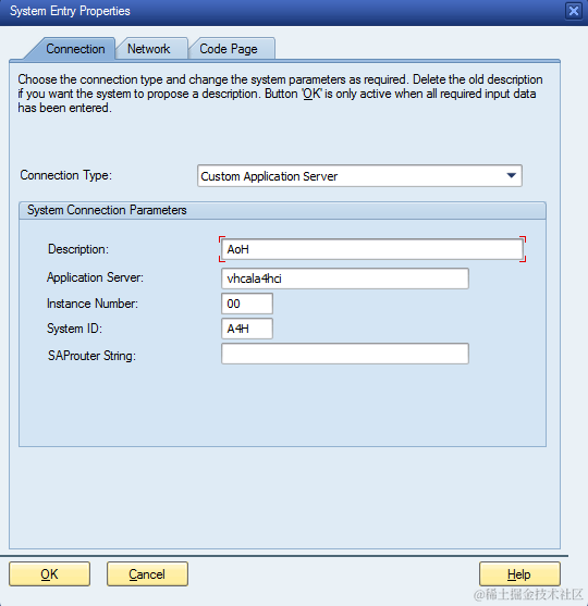 在SAPGUI里新建一个entry,维护hosts文件里添加的主机名,即可连接: