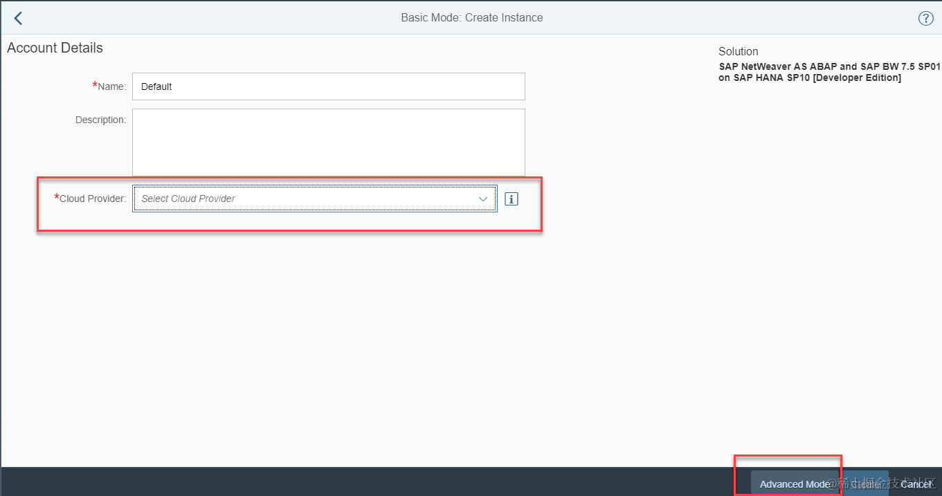 在Cloud provider字段里选择AWS或者Azure(注意,AWS或者Azure的license必须自行解决),点击Advanced Mode, 进行更多详情配置: