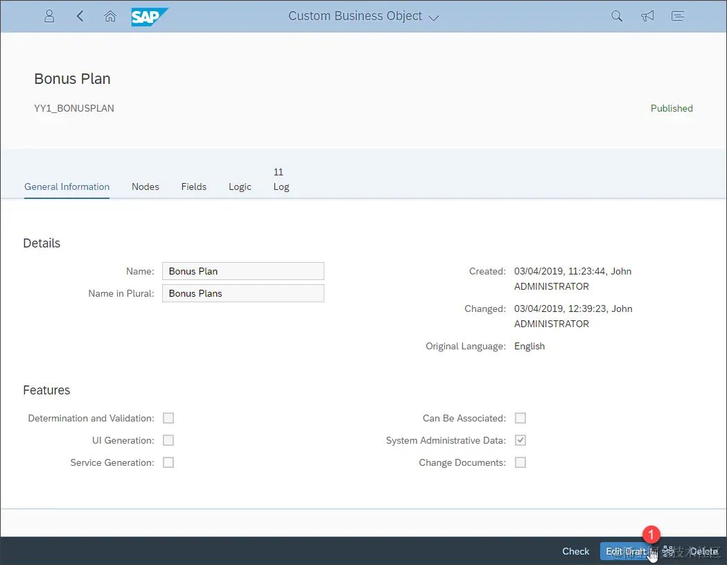 首先登录S/4HANA系统,在Custom Business object tile里找到自定义的BO: