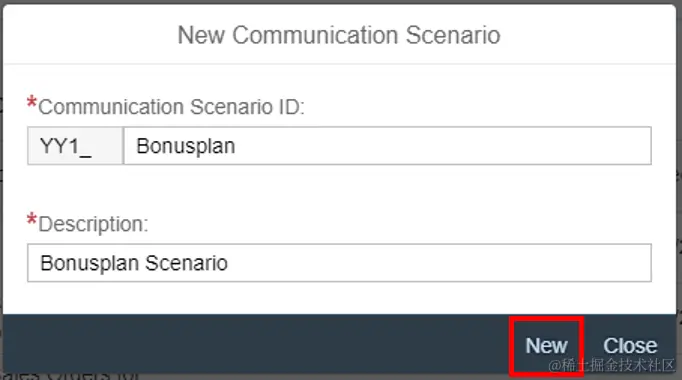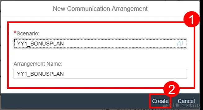基于刚才创建的Communication scenario,新建一个Communication arrangement: