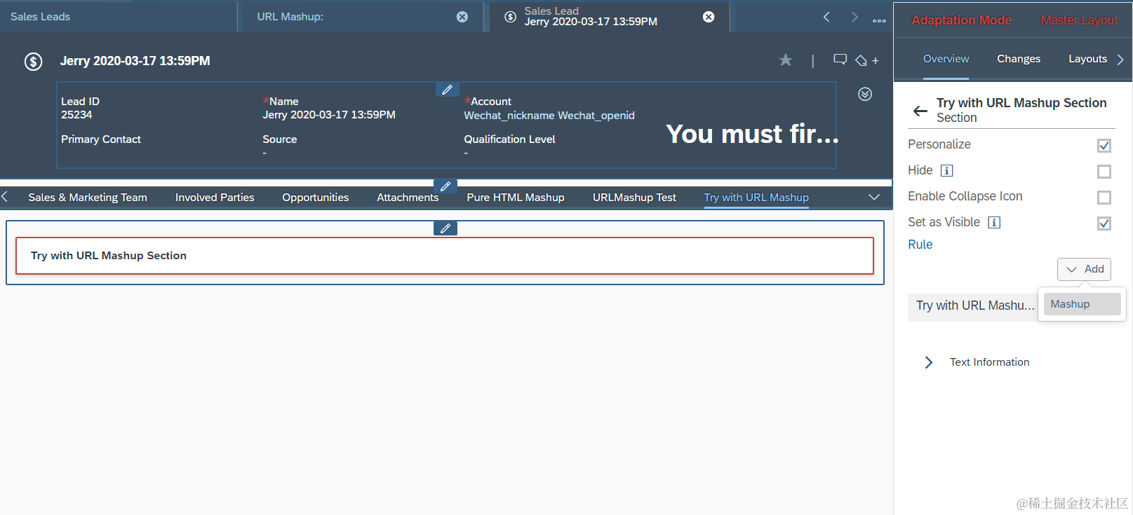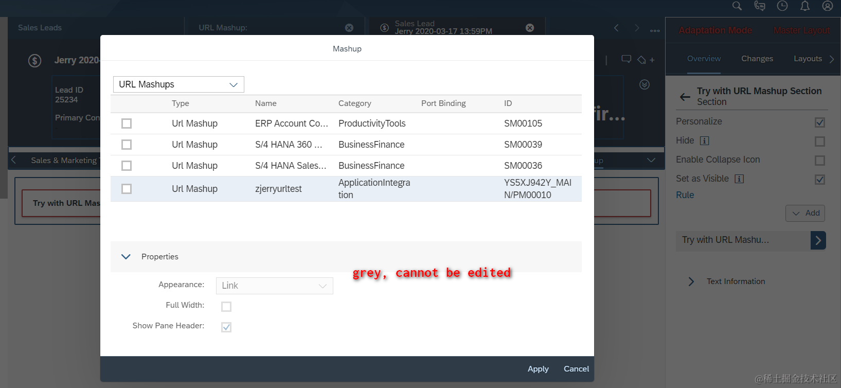 测试:在adaptation模式下,headers区域下的Mashup列表里选择url Mashup: