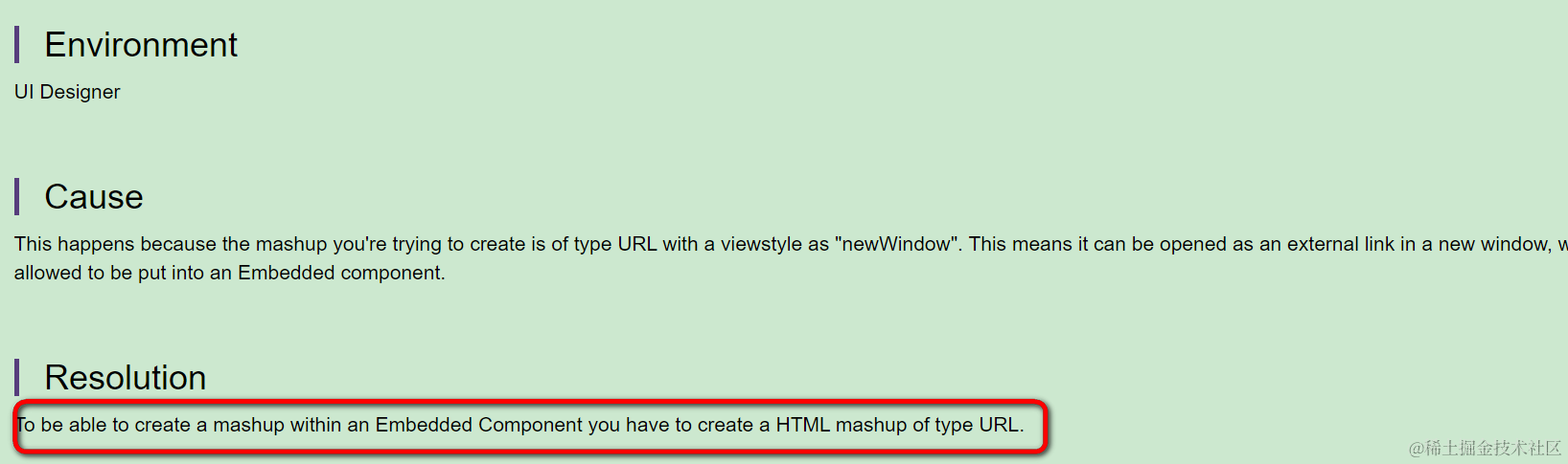 如果试图将url Mashup添加到embedded component里,会遇到下图的提示消息: