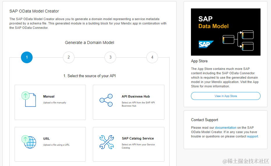 SAP OData Model Creator是一个网站,可以将OData服务的元数据,转换成Mendix的领域模型并导入到项目工程中。