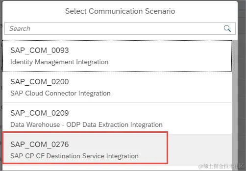 从Communication Scenario下拉列表里,选择之前介绍的SAP_COM_0276: SAP CP CF Destination Service integration: