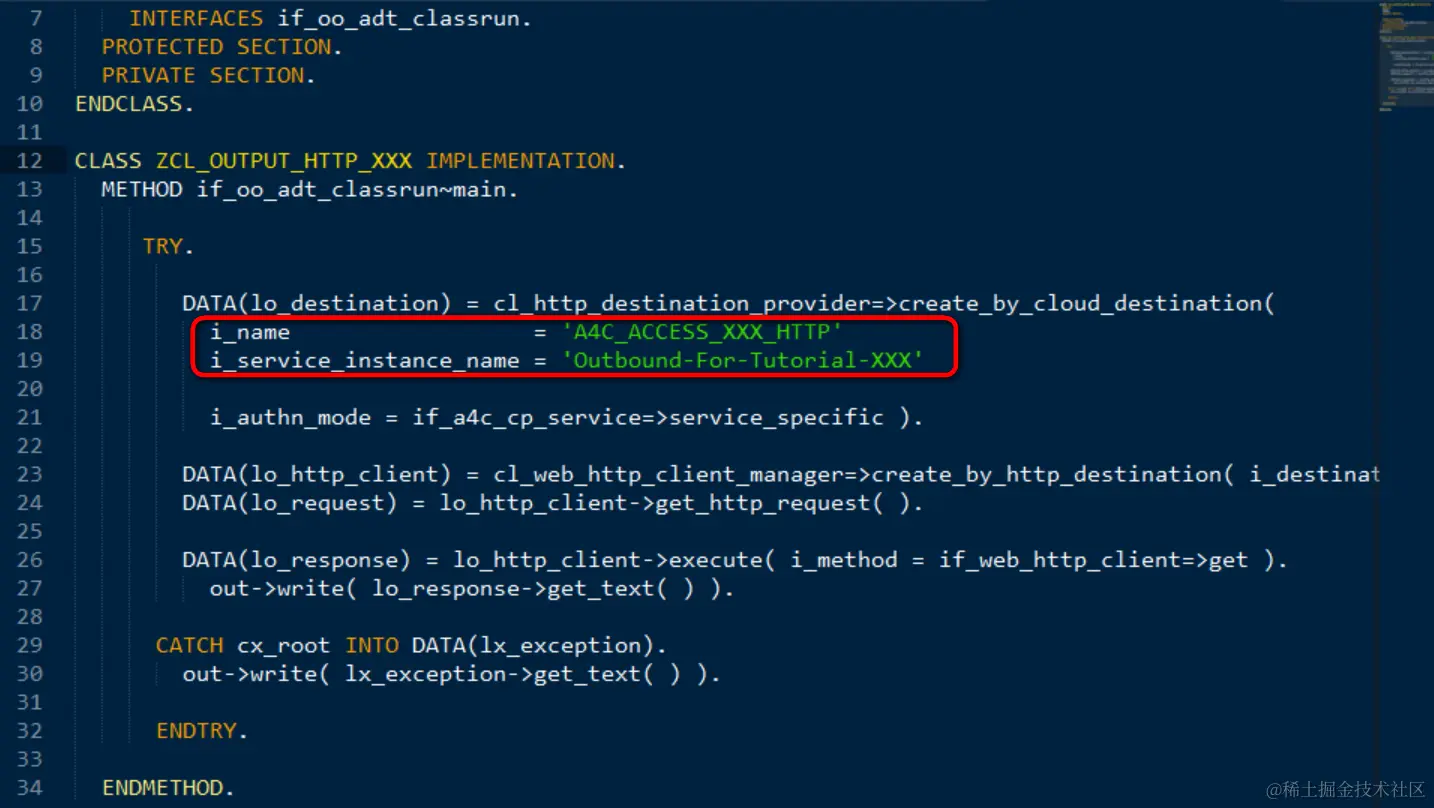 第18行的参数i_name的值,就是之前在SAP Cloud Platform里创建的Destination名称。