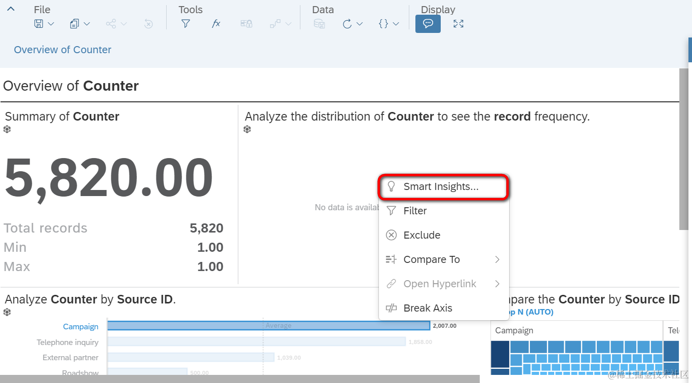选中2007个来自Campaign对应的柱状图,右键菜单选择“Smart Insights”,可以查看智能洞见信息: