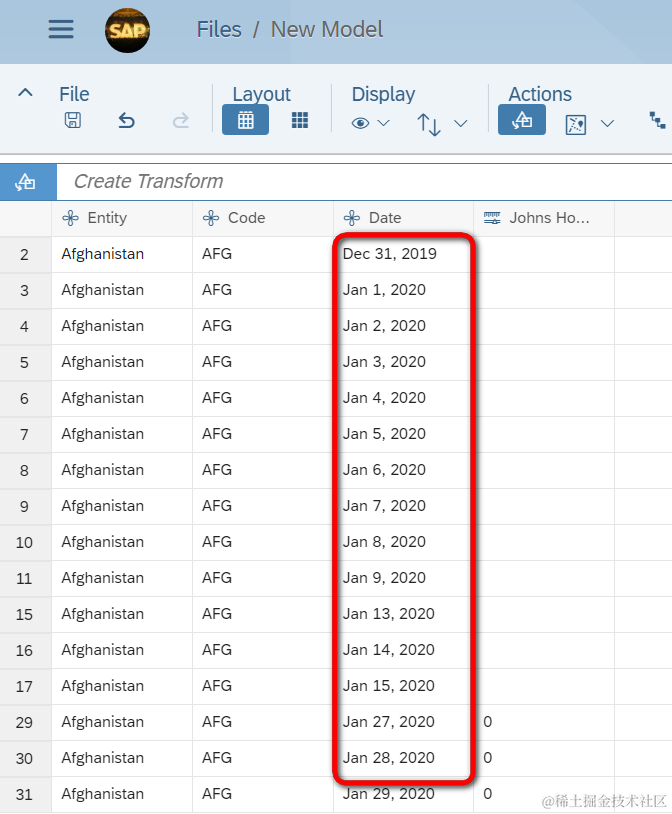 我通过本地csv文件导入到SAP Analytics Cloud之后,日期格式如下图所示:MMM DD,YYYY
