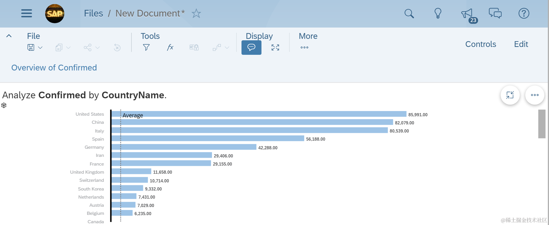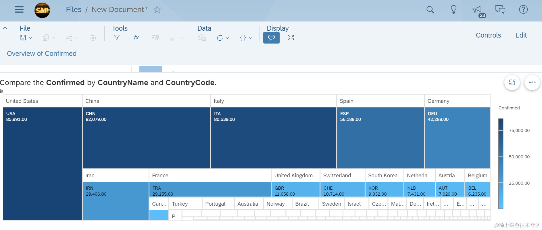 使用SAP Analytics Cloud展示全球新冠肺炎确诊总人数的分布情况 已注销 2021-04-26 82 阅读1分钟 截至2020年3月27日,全球新冠肺炎总确诊人数为五十二万七千三百二十九人。 确诊人数最多的三个国家:美国,中国,意大利 第四第五是:西班牙,德国。 要获取更多Jerry的原创文章,请关注公众号"汪子熙":