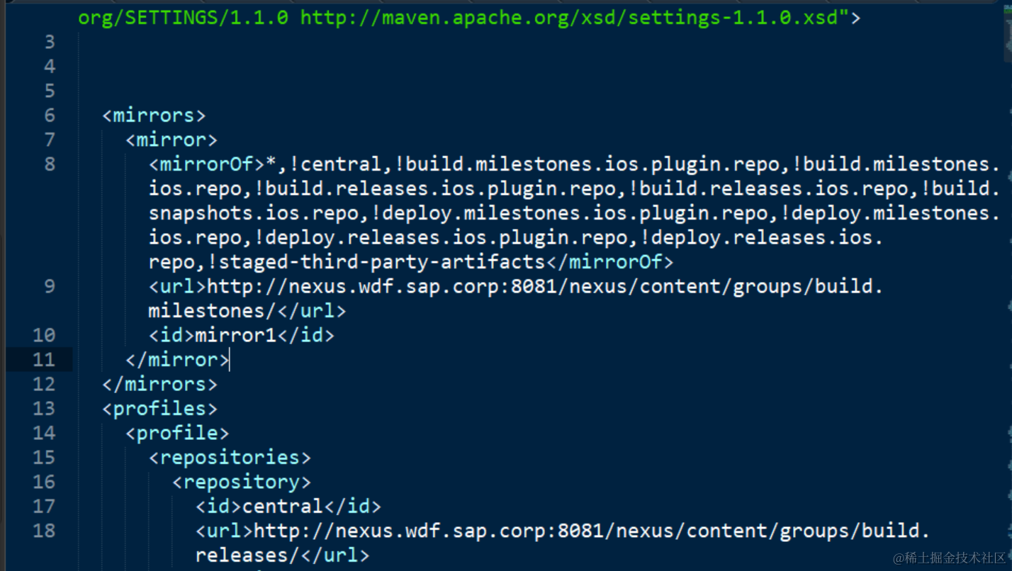 将阿里云的Maven仓库地址明细维护进settings.xml: