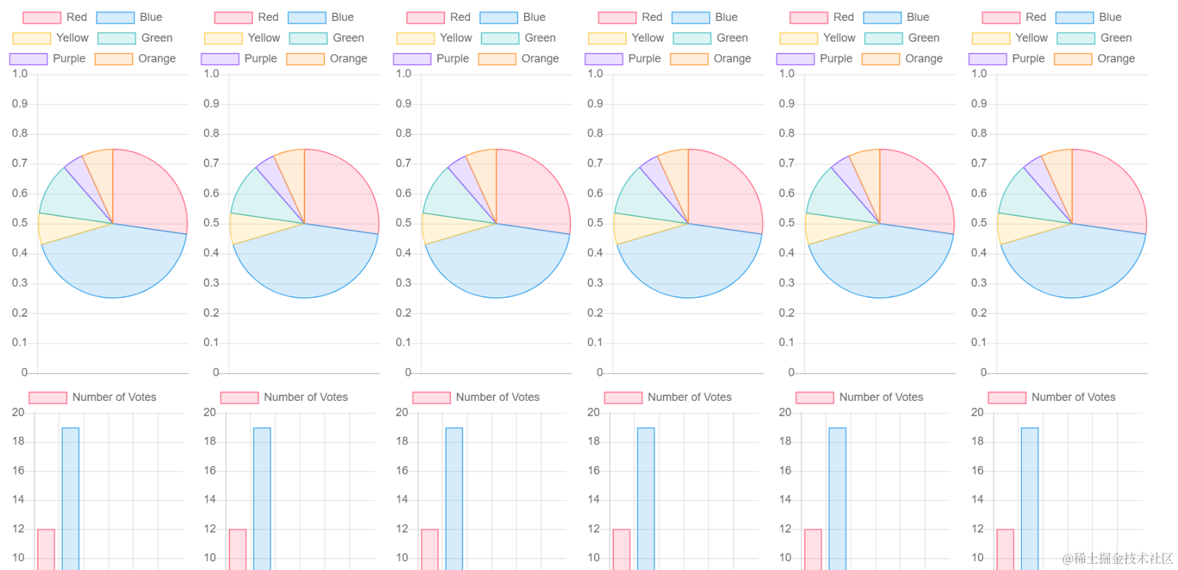 xAxisData: ["Red", "Blue", "Yellow", "Green", "Purple", "Orange"],