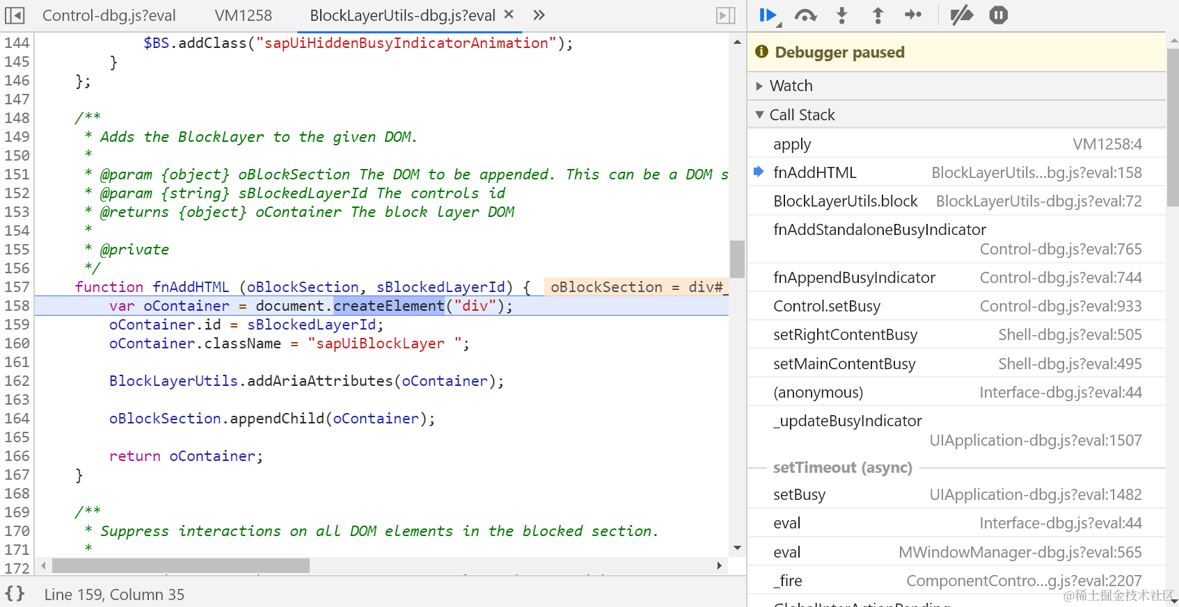 如果想研究这些情形发生的上下文,我们可以使用ES6提供的标准Proxy对象,给浏览器原生的document.createElement方法注入一个proxy,里面设置一个断点。这样每当div标签页被动态创建时,我们注入的proxy将会取代标准的document.createElement被浏览器调用。从断点停下来的调用上下文,我们即可观测到更多信息。