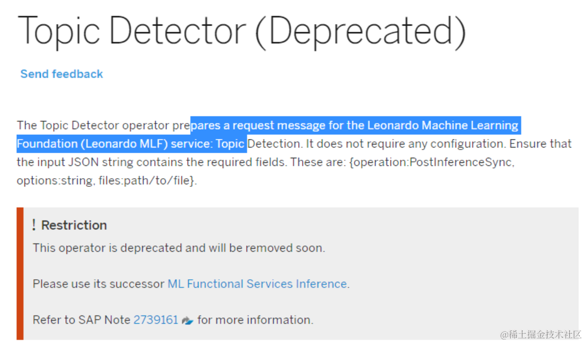 旧的operator ID:com.sap.ml.leonardo.topicDetector