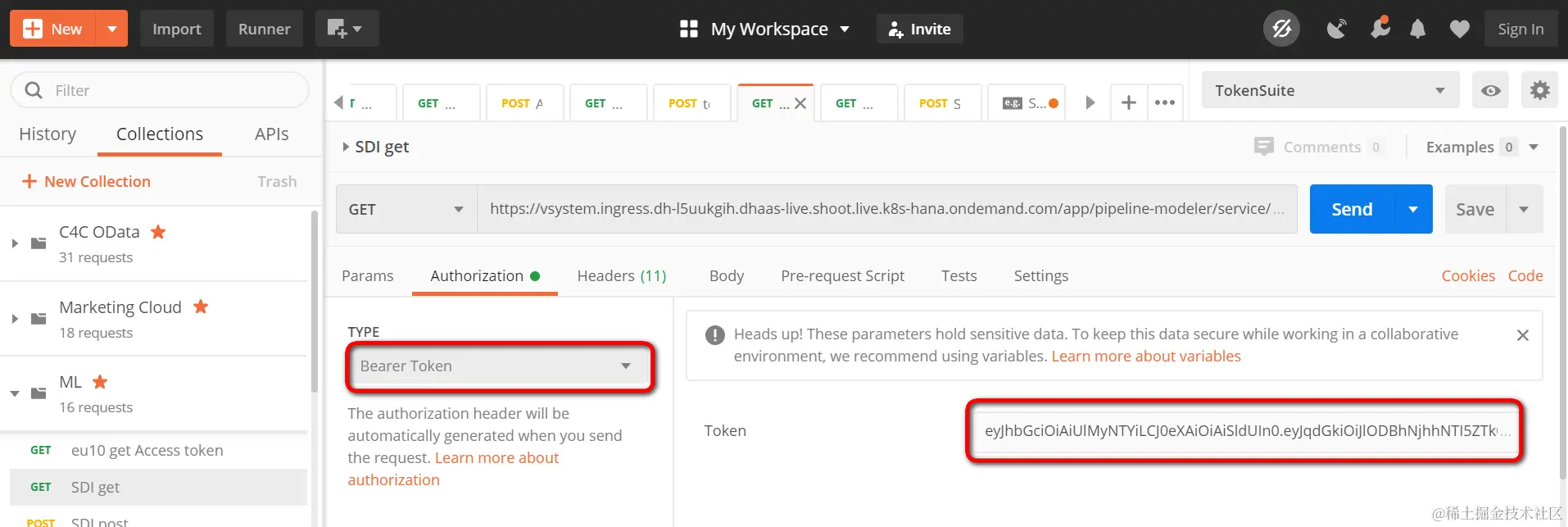 试图使用postman访问SAP Data Intelligence graph API时,遇到401 unauthorized的错误: