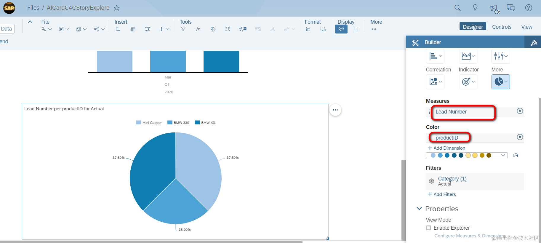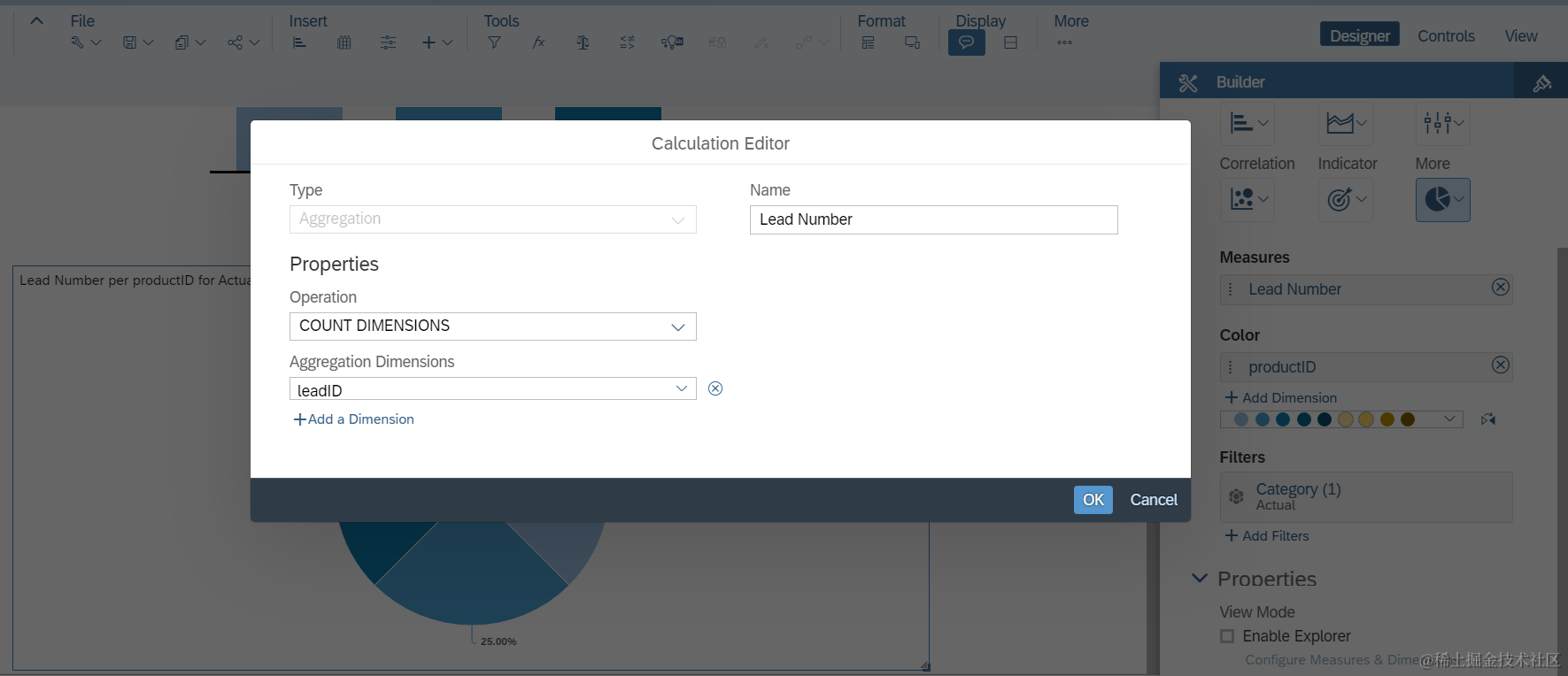 对于pie chart,将Lead Number设置成measure,productID设置成dimension: