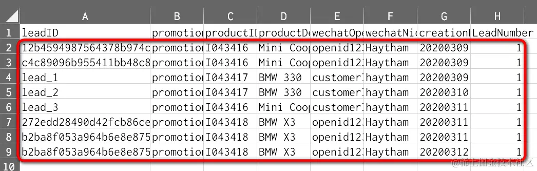 我认为是LeadNumber这个measure,每次导入后没有自动刷新。