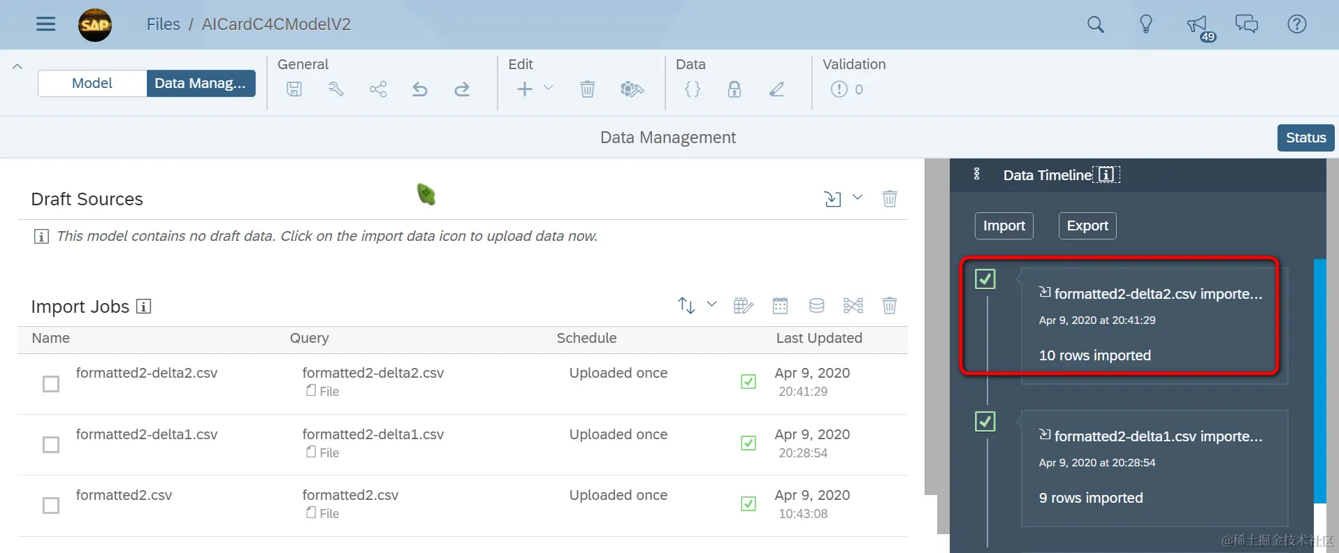 从提示信息看,model里旧的8条记录被删除,新的9条记录进来了,算是实现了增量导入功能。