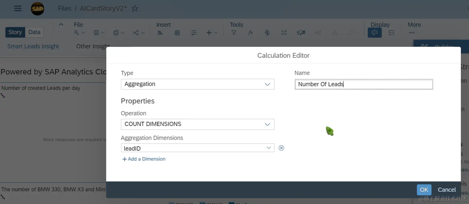 因此我用了一个workaround:在未能自动刷新的图标里,手动创建一个Calculation measure,类型为aggregation,operation为count dimension, aggregation dimensions选择为leadID: