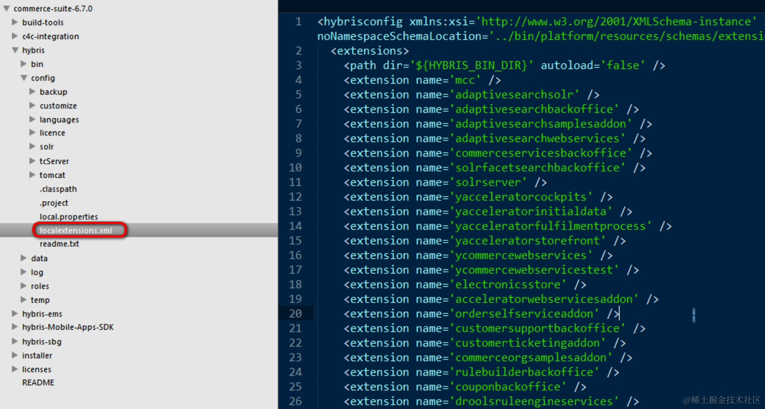 - Modifying the localextensions.xml file located in the <${HYBRIS_CONFIG_DIR}> directory.