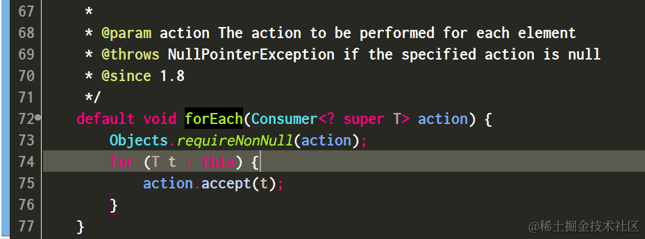 forEach接受的方法参数为Consumer<? super T> action):