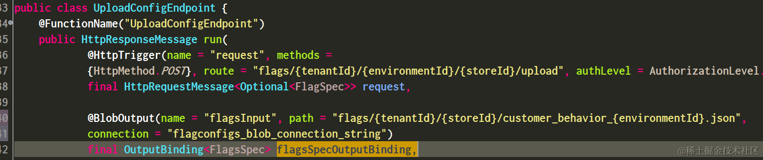 上述注解修饰的含义是,将数据写入如下路径指向的持久化存储里:flags/{tenantId}/{storeId}/customer_behavior_{environmentId}.json