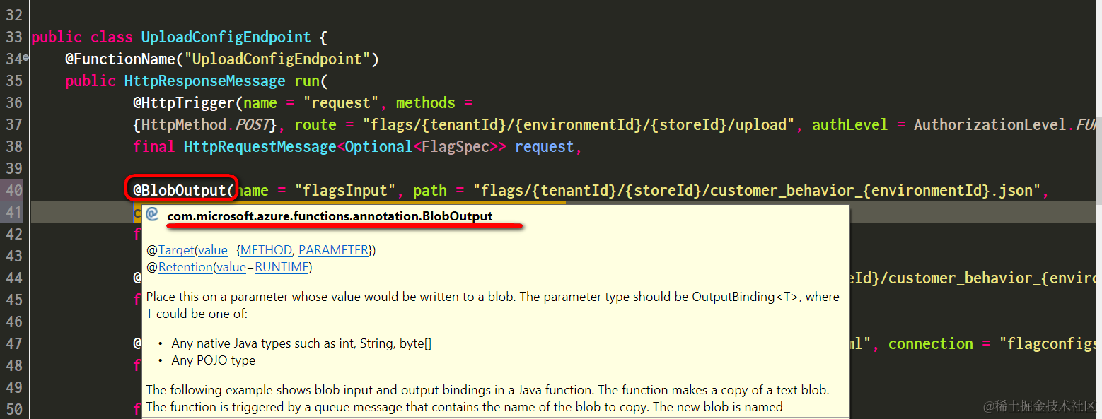 annotation @BlobOutput来自微软package: com.microsoft.azure.functions